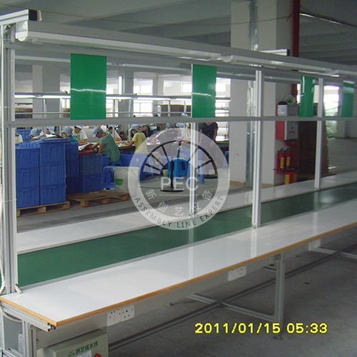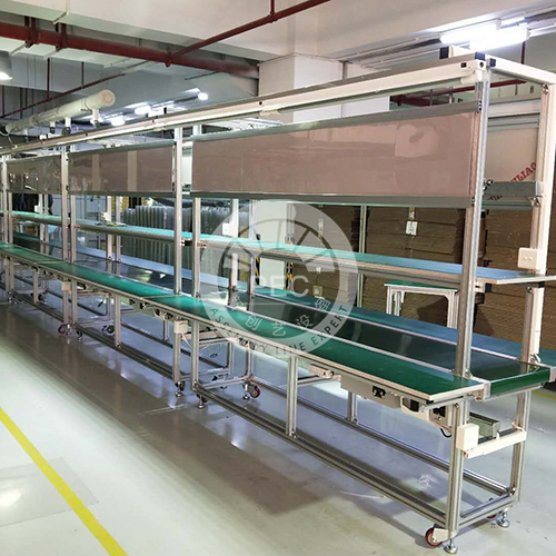 铝直型PVC流水线产品适合于广泛的产品加工、装配、包装等流水式生产作业;采用绿色防静电PVC皮带,无极变频调速装置,两边配有直型长条工作台;工作台,物料台采用18MM厚木板加铺静电胶皮,既美观又适用;全线配有灯架,灯架两边装配专用照明LED灯具、工具吊轨、工艺SOP架、气管及接头,工作台两边下方配有线槽及插座、配电箱等,线体宽度、长度、形状可随客户指定要求生产。
